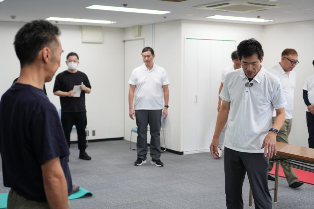 またデモンストレーションでは、腰痛でほとんど体を動かすことができなかった先生が、通電後にその場で体が変化する様を目の当たりにしました。